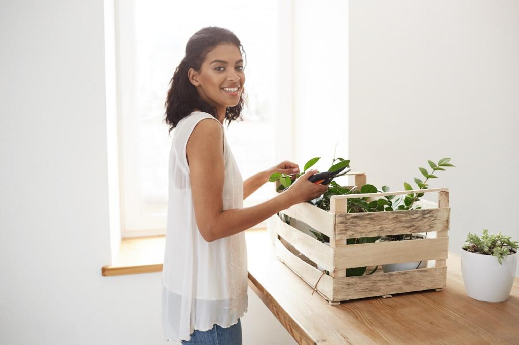 Nachfüllkonzepte und DIY-Rezepte senken Kosten. Gleichzeitig bleiben Oberflächen länger schön, weil du materialgerecht reinigst. Dokumentiere Ersparnisse und Erfolge in einem einfachen Monatsprotokoll und berichte in den Kommentaren.